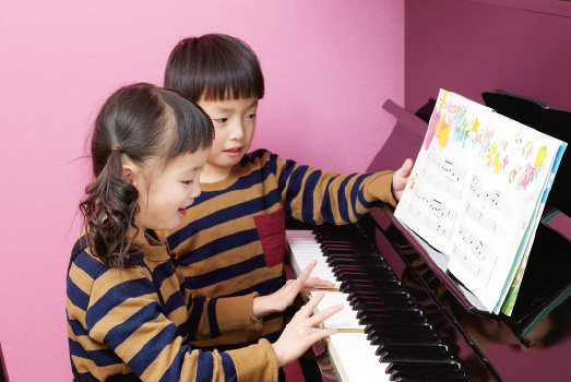 双子の波琉くんと仁菜ちゃん。お兄ちゃんが通っていたこともあって幼児科に。2人一緒のレッスンはママが大変ですが、先生が気遣ってくれるそうで、「助かっています」とはママ。